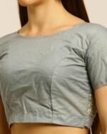 - The last image gives a detailed look of the blouse piece that comes with this saree (The model is wearing a blouse from our in-house wardrobe)
